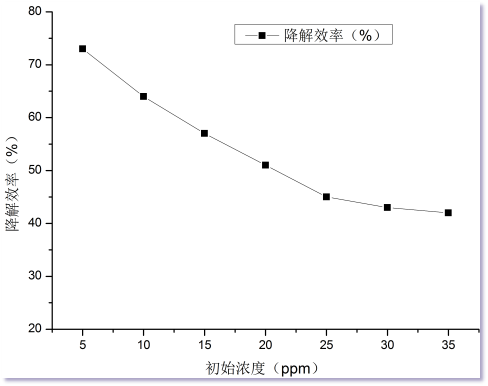 1、隨著甲苯濃度增高,降解效率降低。這是由于真空紫外燈發(fā)射的185 nm的紫外線能量強(qiáng)度有限,單位時(shí)間內(nèi)光解效率下降。