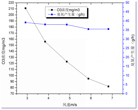 2、風(fēng)速增大,臭氧濃度降低,臭氧產(chǎn)生量沒(méi)有明顯變化,說(shuō)明在3m/s時(shí)真空紫外已經(jīng)被空氣中氧氣充分吸收,增大空氣進(jìn)氣量,燈管自身產(chǎn)生的臭氧量沒(méi)有明顯增加。