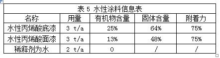 針對此情況,推薦其使用不含苯類成分的水性涂料,從源頭控制揮發(fā)性有機物的產(chǎn)生量。水性涂料信息參見表5。