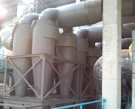 第一步:廢氣通過(guò)收集管道,在動(dòng)力風(fēng)機(jī)的牽引下,進(jìn)入旋風(fēng)除塵器。除塵器中的除塵風(fēng)機(jī)將廢氣中大粉塵通過(guò)離心作用進(jìn)行過(guò)濾,實(shí)現(xiàn)第一步除塵。該除塵器采用組合式旋風(fēng)除塵器,有效地提高除塵效果。