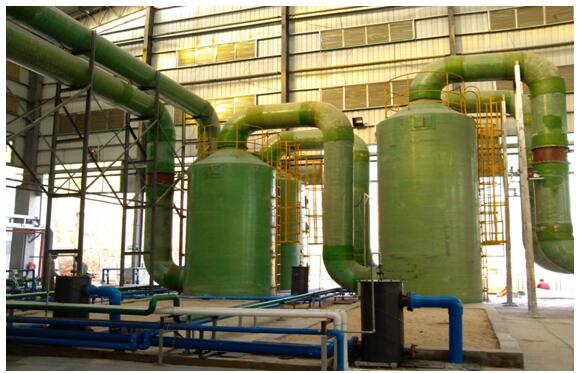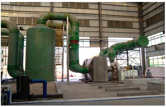 第二步:經(jīng)旋風(fēng)除塵器過(guò)濾后的氣體進(jìn)入水噴淋塔,在水噴淋裝置洗滌后將廢氣的溫度由120℃降至80℃左右,同時(shí)將易溶于水的物質(zhì)從氣體中除去。
