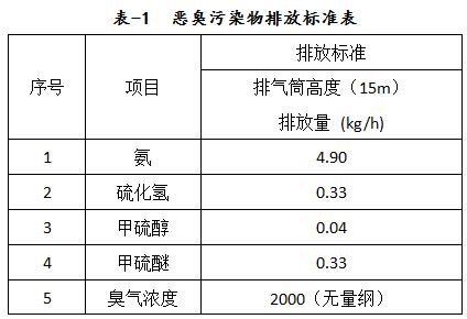 廢氣凈化后其污染物濃度指標(biāo)達(dá)到《惡臭污染物排放標(biāo)準(zhǔn)》(GB14554-93)中的二級(jí)標(biāo)準(zhǔn)。具體情況如表-1所示。