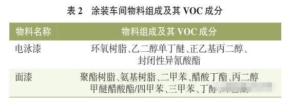 目前涂裝車間普遍使用油漆物料成分比較復(fù)雜,其大致成分詳見表2。