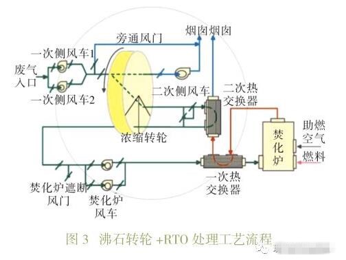 沸石轉(zhuǎn)輪+RTO處理工藝流程見圖3。
