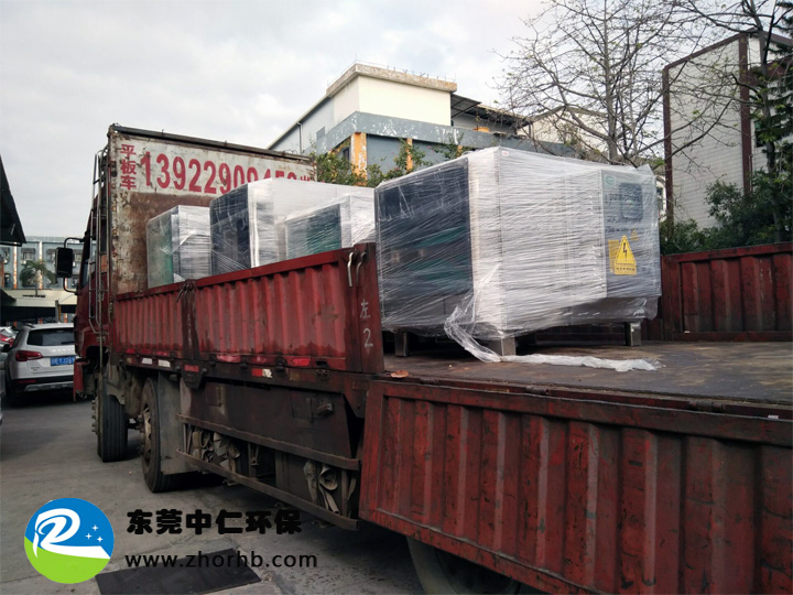 東莞市震宇塑膠實業(yè)有限公司上個月委托我們中仁環(huán)保公司做有機廢氣處理工程。我們的工程師根據(jù)實地的考察和結(jié)合同類型的案例,最后選用UV光解除臭+低溫等離子凈化工藝。因此,我們公司在合同規(guī)定的時間完成了設備的生產(chǎn),并打包好,準備發(fā)往客戶的公司。