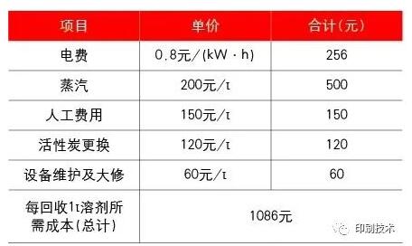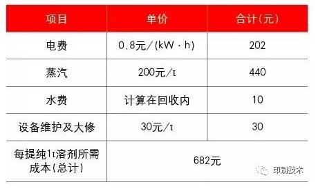 表2提純1t溶劑所需成本