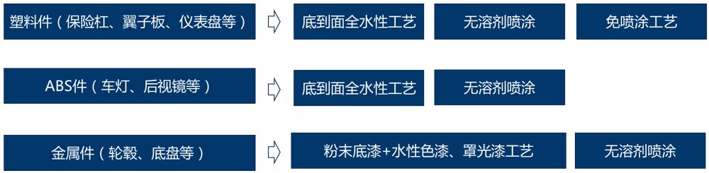 汽車是目前上海經(jīng)濟(jì)貢獻(xiàn)度最突出的支柱產(chǎn)業(yè)。國家《“十三五”揮發(fā)性有機(jī)物污染防治工作方案》中指出,推進(jìn)汽車零部件制造等領(lǐng)域VOCs排放控制。推廣使用高固體分、水性涂料。 中仁環(huán)保小編結(jié)合汽車零部件制造行業(yè)的應(yīng)用現(xiàn)狀和行業(yè)相關(guān)各類標(biāo)準(zhǔn),咨詢行業(yè)相關(guān)專家,梳理了汽車零部件制造業(yè)低VOCs工藝技術(shù)路線及涂料低VOCs含量指標(biāo)值(建議),整理出來。 圖1:汽車零部件制造VOCs技術(shù)路線