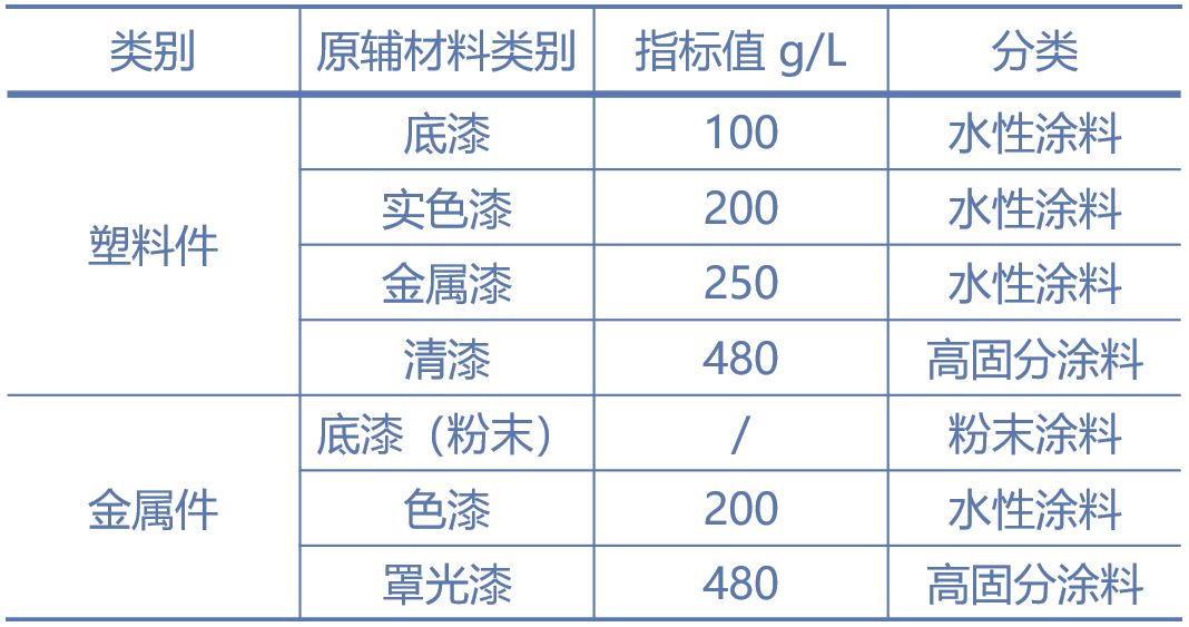 表1:汽車零部件制造業(yè)涂料VOCs含量指標(biāo)值