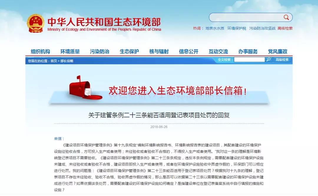 《建設(shè)項目環(huán)境保護管理條例》第十九條規(guī)定“編制環(huán)境影響報告書、環(huán)境影響報告表的建設(shè)項目,其配套建設(shè)的環(huán)境保護設(shè)施經(jīng)驗收合格,方可投入生產(chǎn)或者使用;未經(jīng)驗收或者驗收不合格的,不得投入生產(chǎn)或者使用。”我對這一條的理解是環(huán)境影響登記表項目不需要驗收?!督ㄔO(shè)項目環(huán)境保護管理條例》第二十三條條規(guī)定,違反本條例規(guī)定,需要配套建設(shè)的環(huán)境保護設(shè)施未建成、未經(jīng)驗收或者驗收不合格,建設(shè)項目即投入生產(chǎn)或者使用,或者在環(huán)境保護設(shè)施驗收中弄虛作假的,環(huán)保部門可以相應(yīng)進行處罰。我的問題是:《建設(shè)項目環(huán)境保護管理條例》第二十三條能否適用于登記表項目處罰?根據(jù)我對十九條的理解,登記表項目不存在未經(jīng)驗收、驗收不合格、驗收弄虛作假的情況,那么是否可以依據(jù)第二十三條以需要配套建設(shè)的環(huán)境保護設(shè)施未建成進行處罰?如果依據(jù)該條處罰,需要配套建設(shè)的環(huán)境保護設(shè)施如何確定?是指建設(shè)單位在登記表備案系統(tǒng)中自行填報的措施和設(shè)施?