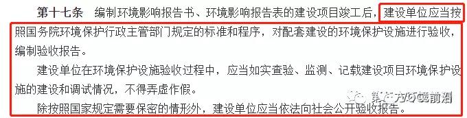 修改后的《條例》第十七條明確“編制環(huán)境影響報告書、環(huán)境影響報告表的建設(shè)項目竣工后,建設(shè)單位應(yīng)當(dāng)按照國務(wù)院環(huán)境保護行政主管部門規(guī)定的標(biāo)準(zhǔn)和程序,對配套建設(shè)的環(huán)境保護設(shè)施進行驗收,編制驗收報告”。因此,自2017年10月1日起,建設(shè)項目環(huán)保設(shè)施竣工驗收主體已由環(huán)保部門轉(zhuǎn)為建設(shè)單位,建設(shè)單位需自行驗收。