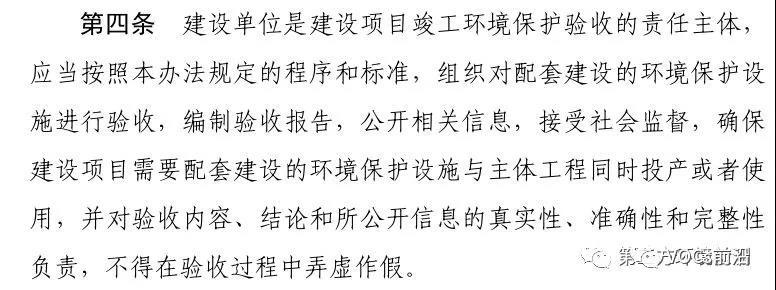 《暫行辦法》?中明確了企業(yè)是建設(shè)項目竣工環(huán)境保護驗收的責(zé)任主體,應(yīng)當(dāng)按照《暫行辦法》規(guī)定的程序和標(biāo)準(zhǔn),組織對配套建設(shè)的環(huán)境保護設(shè)施進行驗收,編制驗收報告,公開相關(guān)信息,接受社會監(jiān)督,對驗收內(nèi)容、結(jié)論和所公開信息的真實性、準(zhǔn)確性和完整性負(fù)責(zé),不得在驗收過程中弄虛作假。