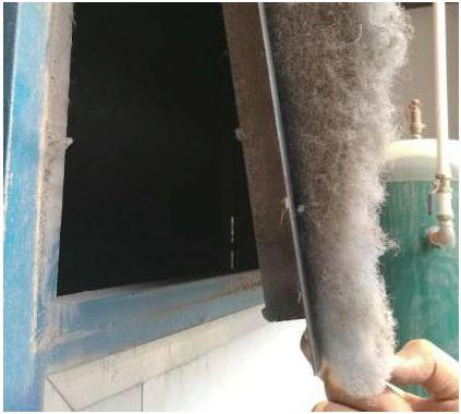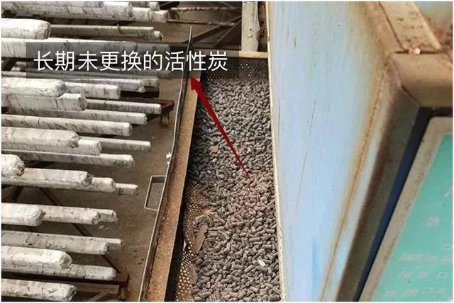 圖為廣東某企業(yè)僅放少許活性炭并長期不更換、造假