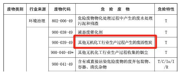 VOCs廢活性炭也沒有在危險廢物豁免管理清單之列。