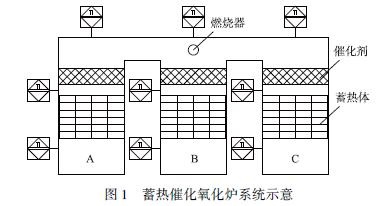 隨著經(jīng)濟(jì)快速發(fā)展,環(huán)境承受力日益削弱,滋生出一系列諸如光化學(xué)煙霧、酸雨、霧霾等環(huán)境污染問(wèn)題。工業(yè)領(lǐng)域中大多數(shù)裝置運(yùn)行時(shí)會(huì)無(wú)組織排放一些揮發(fā)性有機(jī)化合物(VolatileOrganicCom.pounds,VOCs),對(duì)人類、環(huán)境帶來(lái)直接或間接的有害影響,例如感官刺激、黏膜刺激、致癌、光化學(xué)煙霧、臭氧層破壞等,并且表現(xiàn)出日益嚴(yán)重的態(tài)勢(shì)。因此,對(duì)VOCs的治理已在國(guó)內(nèi)全面展開(kāi)。 目前國(guó)內(nèi)治理VOCs的方法主要包括焚燒法、膜分離法、吸附法、等離子體法、生物處理法等。其中焚燒法具有適應(yīng)性強(qiáng)、處理效率高、投入成本低等優(yōu)點(diǎn),被廣泛應(yīng)用于各排放行業(yè)。國(guó)內(nèi)技術(shù)已成熟的焚燒法包括直燃焚燒(ThermalOxidizer,TO)、催化氧化焚燒(CatalyticOxidizer,CO)、蓄熱焚燒(RegenerativeThermalOxidizer,RTO),根據(jù)實(shí)際工業(yè)應(yīng)用時(shí)的廢氣量、廢氣中有機(jī)污染物濃度以及廢氣中雜質(zhì)對(duì)處理方式的影響等因素,選擇不同的焚燒方式處理。 一種基于催化氧化焚燒與蓄熱焚燒的新型處理方法———蓄熱催化氧化焚燒(RegenerativeCatalyticOxidizer,RCO),綜合了催化氧化焚燒法催化氧化反應(yīng)溫度低與蓄熱焚燒法蓄熱式回收熱能等優(yōu)勢(shì),相對(duì)催化氧化焚燒法以及蓄熱焚燒法具有啟爐速度快、反應(yīng)溫度低、節(jié)能效果好等特點(diǎn)。傳統(tǒng)二塔RTO因存在廢氣短路現(xiàn)象無(wú)法實(shí)現(xiàn)較高的VOCs去除率,改進(jìn)后的三塔RTO增加了反吹環(huán)節(jié),能夠避免廢氣短路。三塔RCO同樣可以避免廢氣短路現(xiàn)象,并可以在低濃度有機(jī)廢氣條件下與三塔RTO在同一設(shè)備上實(shí)現(xiàn)雙模式切換運(yùn)行,2種模式均可滿足處理后煙氣達(dá)標(biāo)排放。雙模式切換運(yùn)行相對(duì)于RTO單一模式運(yùn)行可以避免因催化劑失效而帶來(lái)連續(xù)停爐事故,在催化劑失效后可以通過(guò)調(diào)整局部結(jié)構(gòu)在較短時(shí)間內(nèi)應(yīng)用RTO模式運(yùn)行,以保證廢氣連續(xù)處理過(guò)程不受影響。 一、蓄熱焚燒與蓄熱催化氧化焚燒流程 三塔RCO與三塔RTO整體流程相似,不同之處在于是否填裝催化劑以及運(yùn)行溫度水平(RCO運(yùn)行溫度250~350℃;RTO運(yùn)行溫度850~900℃),三塔RTO在每個(gè)蓄熱室的蓄熱體上部填裝催化劑即轉(zhuǎn)換為三塔RCO。RCO系統(tǒng)見(jiàn)圖1。