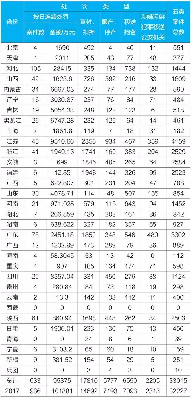 11月23日,生態(tài)環(huán)境部向媒體通報各地2018年1-10月環(huán)境行政處罰案件與《環(huán)境保護(hù)法》配套辦法的執(zhí)行情況。 2018年1-10月,全國共下達(dá)處罰決定書145167份,罰沒款金額為118.295億元。行政處罰力度較大的省份為:廣東、江蘇、河北、山東、浙江。其中,江蘇省(17.90億元)和廣東?。?3.56億元)的罰沒款金額超10億元。 1-10月,行政處罰案件數(shù)量排名前十的地市為:廣州市、石家莊市、東莞市、蘇州市、深圳市、濰坊市、邯鄲市、佛山市、成都市、無錫市;罰沒款金額排名前十的地市為:蘇州市、深圳市、徐州市、廣州市、無錫市、南通市、東莞市、石家莊市、佛山市、常州市。 1-10月,行政處罰案件數(shù)量排名前十的縣(區(qū))為:廣州白云區(qū)、佛山順德區(qū)、濰坊壽光市、天津武清區(qū)、廣州增城區(qū)、無錫江陰市、蘇州吳江區(qū)、北京大興區(qū)、深圳寶安區(qū)、北京房山區(qū);罰沒款金額排名前十的為:深圳寶安區(qū)、佛山順德區(qū)、無錫江陰市、上海崇明區(qū)、常州武進(jìn)區(qū)、廣州增城區(qū)、蘇州昆山市、上海奉賢區(qū)、上海寶山區(qū)、惠州博羅縣。 1-10月,全國實(shí)施五類案件總數(shù)為33015件,比去年同期(32227)增長2.45%。其中,按日連續(xù)處罰案件633件,比去年同期(936)減少32.4%;罰款金額9.54億元,比去年同期(10.19億元)減少6.4%;查封、扣押案件17810件,比去年同期(14692)增長21.2%;限產(chǎn)、停產(chǎn)案件5777件,比去年同期(7193)減少19.7%;移送行政拘留6590起,比去年同期(7093)減少7.1%;移送涉嫌環(huán)境污染犯罪案件2205件,與去年同期(2313)減少4.7%。 《環(huán)境保護(hù)法》配套辦法案件數(shù)量較多的為江蘇、廣東、安徽、浙江、福建、陜西六省。案件數(shù)量與去年同期相比上升明顯的為重慶、廣西、河北、天津、江蘇、河南六省市。 1-10月,配套辦法案件數(shù)量排名前十的地市為:臺州市、廣州市、呂梁市、無錫市、徐州市、西安市、泉州市、合肥市、蘇州市、常州市。 截至10月底,全國所有地市均有適用《環(huán)境保護(hù)法》配套辦法的案件。 1-10月,配套辦法案件數(shù)量排名前十的縣(區(qū))為:廣州白云區(qū)、合肥長豐縣、泉州晉江市、阜陽阜南縣、深圳龍華新區(qū)、呂梁交城縣、西安鄠邑區(qū)、徐州豐縣、常州武進(jìn)區(qū)、連云港贛榆區(qū)。 截至10月底,還有167個縣(區(qū))沒有適用配套辦法案件。零案件縣(區(qū))較多的省份為山東、河北、山西、湖北等4省。