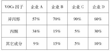 我們對國4家大型集成電路制造企業(yè)的有機排氣VOCs成分進行調(diào)研,發(fā)現(xiàn)這4家企業(yè)的VOCs亦以異丙醇和丙酮為主。
