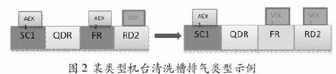 本行業(yè)某些類型的機臺,同時使用幾種不同類型的化學(xué)品,機臺的排氣類型不便于直接判定的,可單獨對此機臺端的排氣進行成分檢測,以確定其排氣類型。下圖例中某機臺,SCI槽使用氨水,接堿性排氣%AEX ) ,RD2 槽使用有機溶劑,接有機排氣%VEX ) ,這2 個槽的排氣類型可以明確確定。FR槽使用水清洗沾有氨水的芯片,按常規(guī)應(yīng)接AEX ,考慮到右邊RD2槽的有機溶劑揮發(fā)氣體可能會有部分泄漏至FR槽,故對FR槽的排氣成分實施監(jiān)測后發(fā)現(xiàn),VOC 濃度遠(yuǎn)大于氨氣,故FR槽排氣應(yīng)接至VEX。