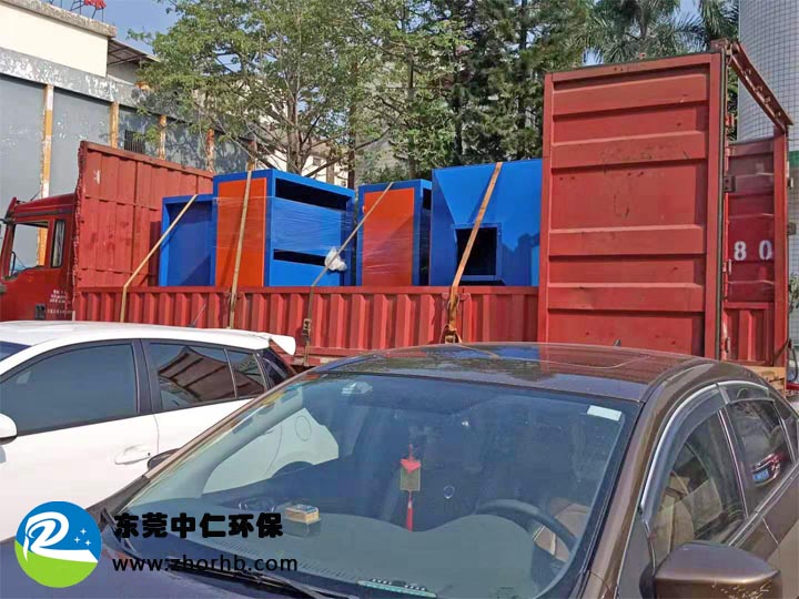 東莞市恒惠眼鏡有限公司在上個月月底向我們中仁環(huán)保公司訂購了兩套有機廢氣處理設(shè)備(UV光解設(shè)備+活性炭吸附器)。在合同規(guī)定的交貨日期前,我們完成了這兩套有機廢氣處理設(shè)備的生產(chǎn),并打包裝車發(fā)往客戶的公司。