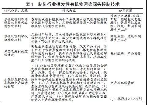 制鞋行業(yè)揮發(fā)性有機物污染源頭控制技術的具體情況見表1。