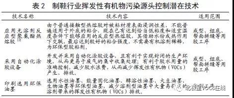 制鞋行業(yè)揮發(fā)性有機物(VOCs)污染源頭控制潛在技術相關情況見表2。