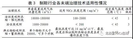 針對活性炭吸附法、活性炭吸附濃縮- 催化燃燒法、沸石轉輪吸附濃縮+ 蓄熱燃燒三種方法對制鞋廢氣處理的適用性情況,結合廣東省有機廢氣治理相關技術指導性文件,具體適用情況見表3。