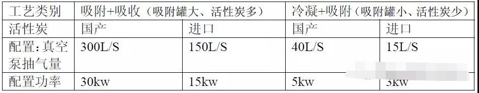 ②,關(guān)于真空泵配置功率:從吸附罐體積大小、活性炭用量多少的比較,采用真空泵大小的問題,也很明顯。需要配置真空泵的情況見下表:
