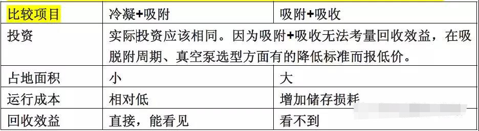 綜合以上分析,我們不難得到冷凝+變壓吸附/吸附+吸收技術(shù)的數(shù)據(jù)比較: