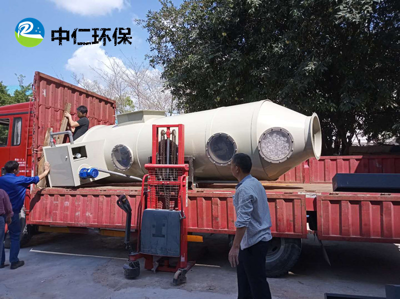 東莞市振宏電氣有限公司向我司定制的噴淋塔+UV光解活性炭吸附一體出貨啦!