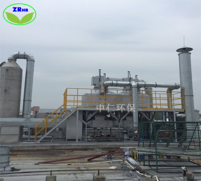 利用噴淋塔除去漆霧和可溶于水的物質(zhì),再經(jīng)過干式過濾器,進(jìn)去活性炭吸附裝置,等活性炭吸附滿的時(shí)候,再脫附(脫附方法有蒸汽脫附、電加熱脫附、氮?dú)饷摳剑?,將脫附之后的氣體(濃度較原來提高幾十倍)由脫附風(fēng)機(jī)進(jìn)入催化燃燒裝置燃燒,燃燒成二氧化碳和水,后排出。