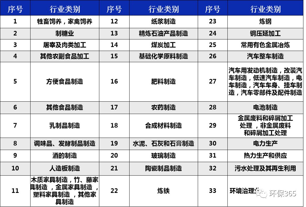 2020年4月30日前須申領排污許可證的33個行業(yè)