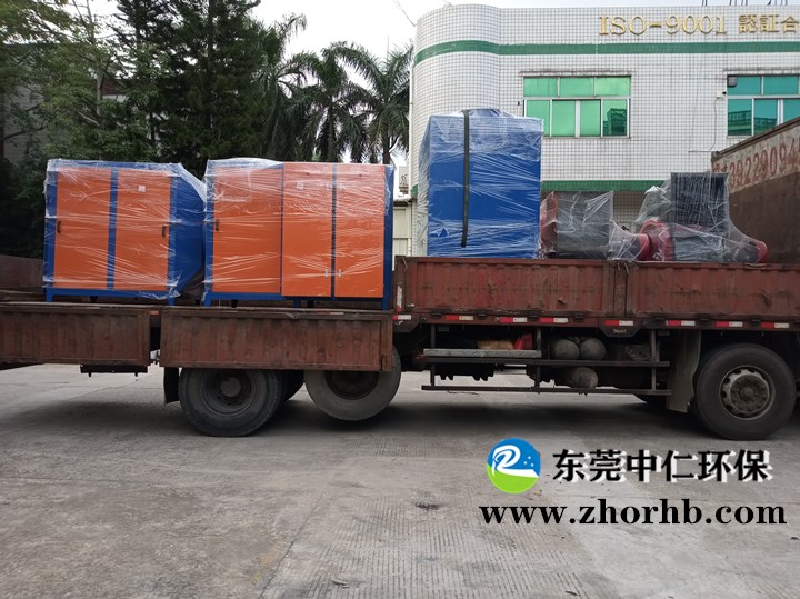 兩臺(tái)活性炭吸附塔加一臺(tái)光解活性炭一體機(jī)出貨到廣州工程公司