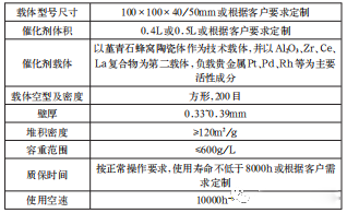 催化劑種類很多,目前VOCs處理一般選用較多的是蜂窩式貴金屬催化劑,其載體一般為堇青石蜂窩陶瓷。下圖為某公司生產(chǎn)的催化劑性能表僅供參考。