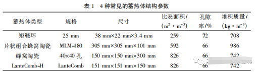 1耐高溫性能 RTO 設備在正常工作情況下,燃燒室的溫度超過 800 ℃,為了保證蓄熱體可以重復使用,它必須能夠承受高溫。經(jīng)研究發(fā)現(xiàn),陶瓷能夠承受高溫,能夠克服一般金屬材料高溫下氧化變質(zhì)、使用壽命短的弊端。 2熱導率性能 根據(jù) RTO 設備的工作原理,蓄熱體可以在短時間內(nèi)快速完成吸熱和放熱。蓄熱體具備良好的導熱性,有利于熱傳導,能夠很快地將高溫煙氣的熱量吸收,并迅速傳遞給需要加熱的氣體。 3抗熱震性能 蓄熱體需要反復吸熱和放熱,在冷熱溫差的作用下很容易引起熱應力變化。如果蓄熱體材料的抗震性能不足,很可能導致破裂和材料蓄熱性能降低,甚至不能正常工作。 4比熱和密度性能要求 蓄熱體必須具有熱回收率高和儲熱性能好的特點。RTO 設備中使用的蓄熱體由幾種材料混合組成,根據(jù)材料的依存性,密度越高,組合材料的密度就越大。因此,在研究 RTO 蓄熱材料時,在不影響材料耐熱性能的前提下,應該盡可能提高密度。 三、蓄熱體材料 蓄熱體材料不同工況下,RTO 裝置使用的蓄熱體材質(zhì)不同, 常見的有陶瓷蜂窩體、陶瓷小球和陶瓷管。陶瓷材料具有耐高溫、抗氧化、耐腐蝕和低加工成本的優(yōu)點,因此選擇陶瓷材料作為儲熱材料。陶瓷蓄熱體由莫來石和堇青石制成,常見蓄熱體的形狀有球形、鞍狀、多層板 ( 或波紋板) 和蜂窩狀。4 種常見的蓄熱體結(jié)構參數(shù)見表 1。