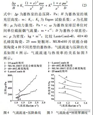 由圖4可知:隨著氣流速率的增加,壓降從小到大依次為LantcComb-H、40x40孔蜂窩陶瓷、MLM-180片狀組合蜂窩陶瓷、25mm矩鞍環(huán)。由圖5可知:隨著氣流速率的增加,熱效率從大到小依次為LantcComb-H、40x40孔蜂窩陶瓷、MLM-180片狀組合蜂窩陶瓷、25mm矩鞍環(huán)。因此,LantcComb-H具有壓降損失較小、熱效率較好的優(yōu)點。 RTO 升溫結(jié)束后進入正常運轉(zhuǎn)時,在閥切換的時間段內(nèi),RTO 進氣室內(nèi)的流速會發(fā)生變化,蓄熱體輸出的氣體溫度開始是接近爐膛溫度的,隨著時間的推移,溫度會逐漸變低,等到換向閥再一次換向時,溫度達到最低點。在加熱階段,熱的煙氣主要以對流和輻射的方式被排放到球體表面,以進行預熱。在冷卻時期,蓄熱體主要以對流和輻射的方式將熱量通過球體輪廓釋放出來,傳遞給被預熱氣體。 一般采用的陶瓷小球的直徑不大,通常在 20mm 以內(nèi),把小球緊密堆積起來,球?qū)又袣怏w的平均自由行程不高,忽略輻射熱交換,加熱周期和冷卻周期的傳熱方向不同、傳熱方式和傳熱過程相同。傳熱過程可以表達為氣體吸熱或放熱過程、氣體與球表 面的對流換熱過程、球內(nèi)的非穩(wěn)態(tài)導熱過程。 四、結(jié)論 ( 1) 改變蓄熱體的構造和技術參數(shù),以解決 RTO 設備運行過程中可能出現(xiàn)的安全隱患會成為未 來的研究熱點; ( 2) 目前,針對 RTO 處理 VOCs 方面的研究,主要集中在蓄熱體高度、填充物形狀、材質(zhì)等因素對蓄熱體的蓄熱效率和壓力損失; ( 3) 在 LanteComb-H、40× 40 孔蜂窩陶瓷、25 mm 矩鞍環(huán)、 MLM-180 片狀組合蜂窩陶瓷中,LanteComb-H 具有壓降小、熱效率高的優(yōu)點。 來源:環(huán)保