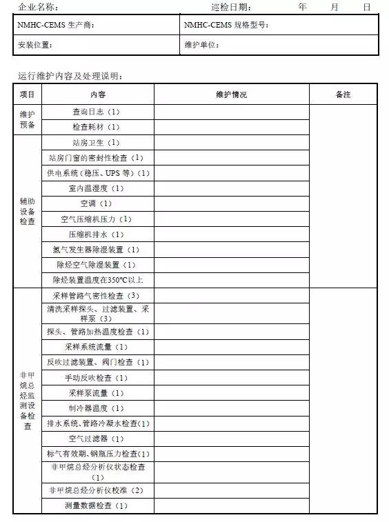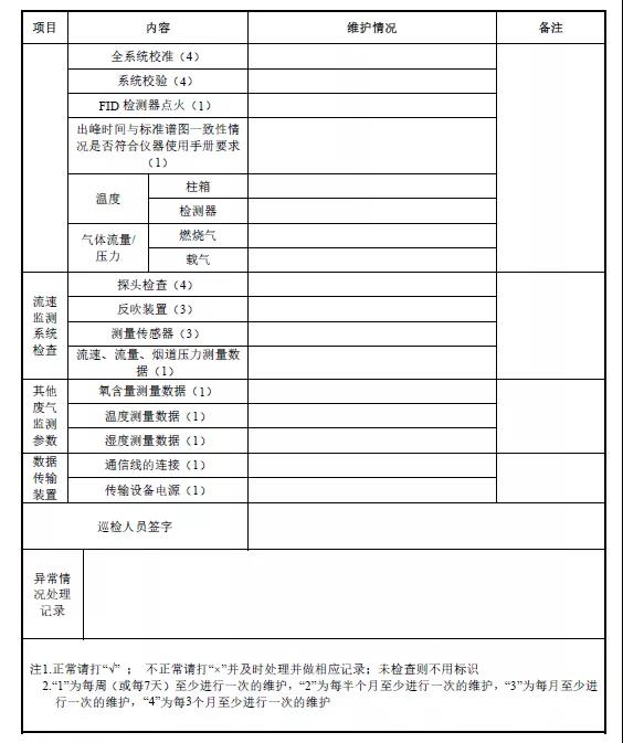 VOCs在線監(jiān)測(cè)系統(tǒng)日常巡檢記錄應(yīng)包括檢查項(xiàng)目、檢查日期、被檢項(xiàng)目的運(yùn)行狀態(tài)等內(nèi)容,而且每次巡檢應(yīng)記錄并歸檔,日常巡檢時(shí)間間隔不超過7d。