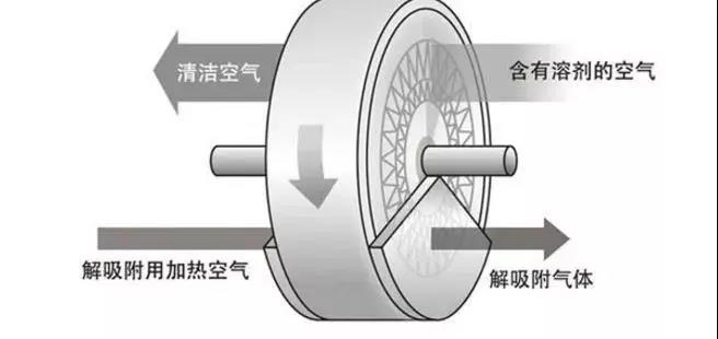 至于轉(zhuǎn)輪其操作原理是怎樣的一個(gè)過(guò)程呢?可能熟悉的人耳朵都聽(tīng)出老繭了:VOCs 廢氣通過(guò)疏水性沸石濃縮轉(zhuǎn)輪后,能有效被吸附于沸石中,達(dá)到去除的目的。經(jīng)過(guò)沸石吸附的VOCs的潔凈氣體,直接通過(guò)煙囪排放到大氣中,轉(zhuǎn)輪持續(xù)以每小時(shí)1-6轉(zhuǎn)的速度旋轉(zhuǎn),同時(shí)將吸附的VOCs傳送至脫附區(qū)。