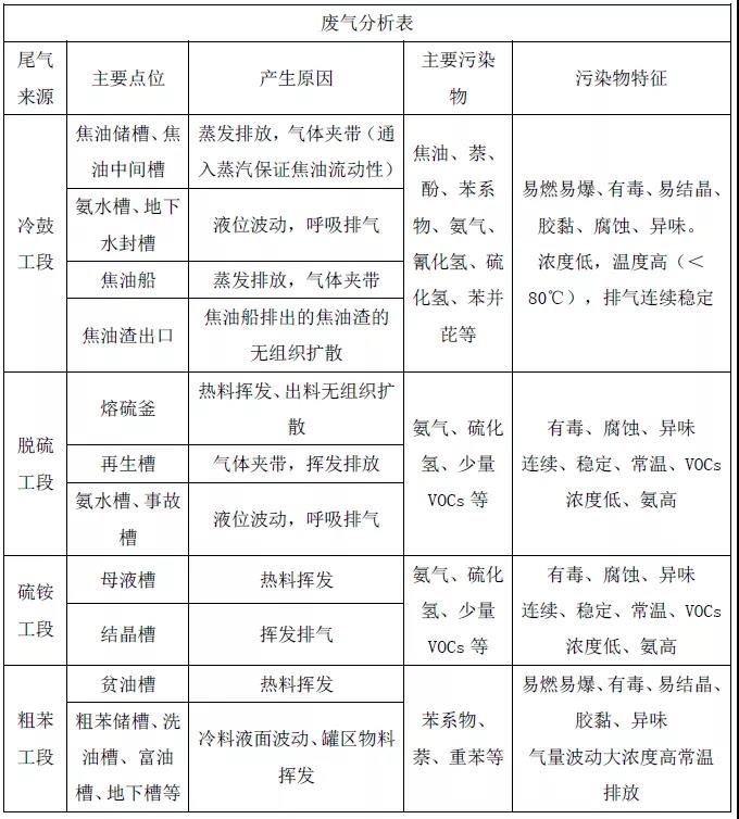 焦化有機廢氣VOCs的逸散點之前我們有過多次總結(jié),今日再梳理,針對傳統(tǒng)焦化行業(yè),VOCs 排放主要集中在化產(chǎn)區(qū)域各罐槽類裝置釋放氣。主要排放點分析如下: