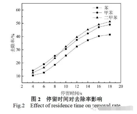 2.2 停留時間對“三苯”氣體去除率的影響