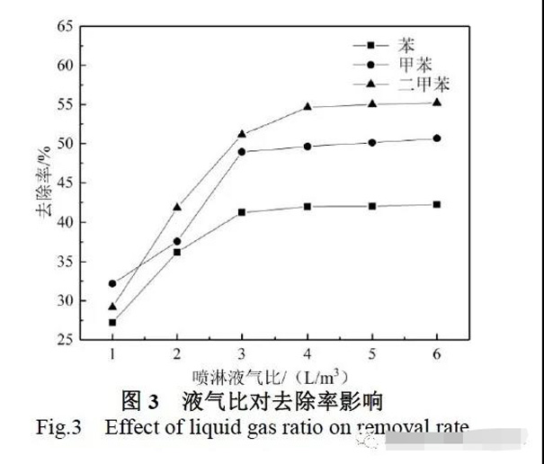 2.3 噴淋液氣比對“三苯”氣體去除率的影響