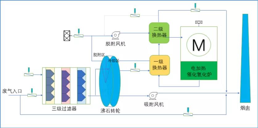 沸石轉(zhuǎn)輪+催化燃燒工藝流程圖