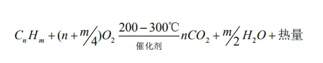 RCO 廢氣處理工藝原理示意圖 催化燃燒技術(shù)(RCO)是利用催化劑做中間體,使有機(jī)氣體在較低的溫度下,變成無害的水和二氧化碳?xì)怏w,即: