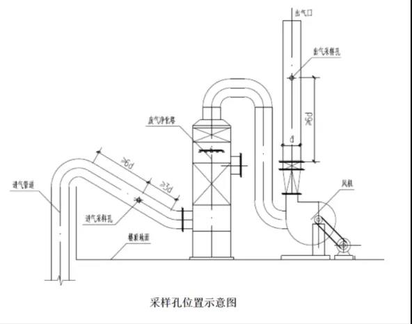 對于治理設(shè)施的 VOCs 去除效率監(jiān)測,應(yīng)在處理設(shè)施的廢氣進(jìn)、出口,分別設(shè)置采樣位置、采樣孔、采樣平臺(tái)等監(jiān)測條件。其中,為了保證煙氣流速、煙氣濃度、顆粒物等指標(biāo)監(jiān)測結(jié)果的代表性、準(zhǔn)確性,要特別注意采樣位置的規(guī)范性。