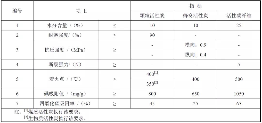 2、 工業(yè)有機(jī)廢氣治理用活性炭推薦技術(shù)指標(biāo)