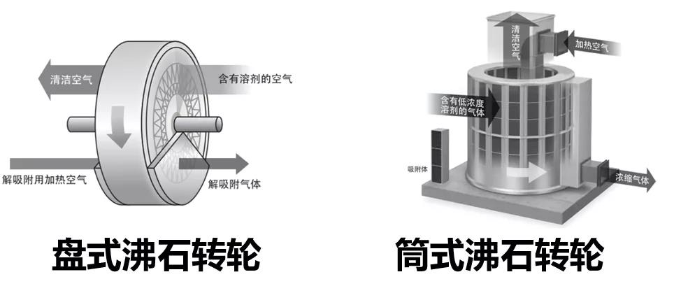 沸石轉(zhuǎn)輪分為筒式轉(zhuǎn)輪和盤式轉(zhuǎn)輪,可以根據(jù)處理風(fēng)量、VOCS成分的不同選擇合適的轉(zhuǎn)輪。