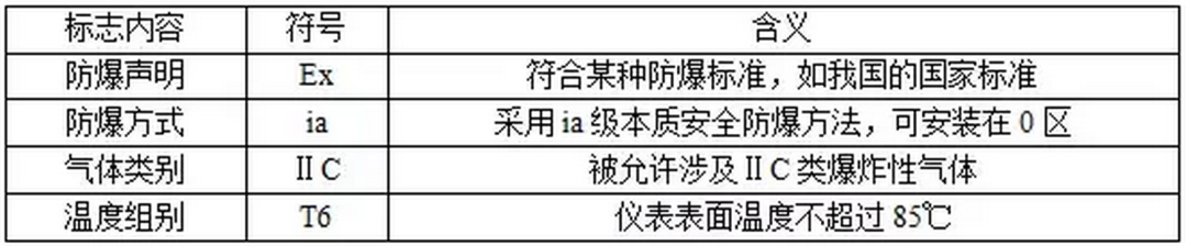 儀表的防爆標志 Ex(ia)ⅡC T6的含義 :
