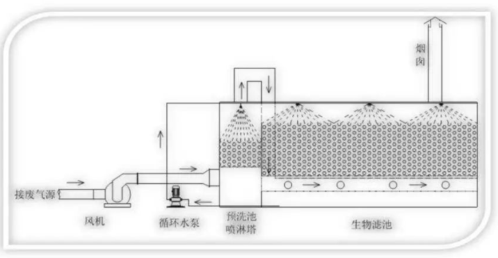 大多數(shù) VOCs 的氣味并不明顯,但有一些 VOCs,如醇、醛、酮類、芳香烴類、含硫化合物等濃度達到一定程度會有較明顯的令人喜歡或厭惡的氣味。惡臭氣體不僅包括氨、硫化氫等揮發(fā)性無機氣體,還包括許多化學成分極為復雜的揮發(fā)性惡臭有機物(MVOC)。那在化工企業(yè)中,特別是污水池逸散的廢氣,是典型的臭氣,一般用生物除臭裝置進行除臭處理,那生物除臭裝置在設計時,應重點關注哪些?下面我們來看: 1、生物濾池的高度一般在0.5~1.5 m,濾池太高會增加氣流的流動阻力,太低會增加溝流現(xiàn)象,影響處理效果; 2、為防止氣體中顆粒物造成過濾器堵塞,廢氣進入生物過濾器之前必須除塵;廢氣應被水蒸氣飽和(相對濕度> 95%),以免生物過濾材料干燥、開裂;