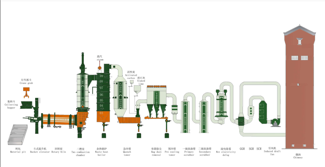 醫(yī)療廢物回轉(zhuǎn)窯工藝流程圖