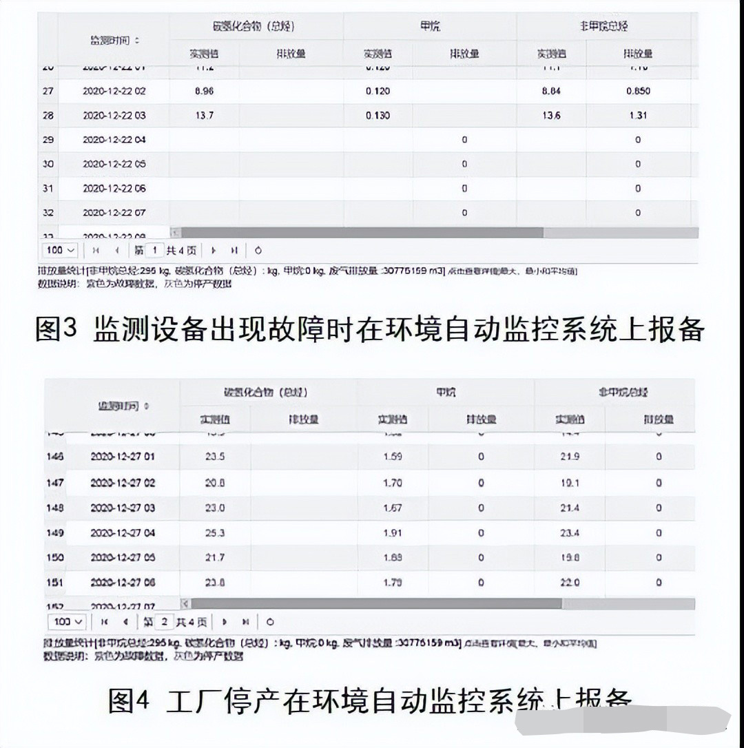 3.2調(diào)試 調(diào)試主要分三部分,取樣檢測調(diào)試、數(shù)據(jù)上傳系統(tǒng)及視頻監(jiān)控系統(tǒng)調(diào)試,分別由相關(guān)專業(yè)人員進行。監(jiān)測設(shè)備在整套系統(tǒng)調(diào)試完成后,進行168 h正常運行后進行初檢,初檢期間宜輔以人工取樣檢測,一般為4次/d取樣檢測;初檢合格后,進入90d現(xiàn)場運行期;90 d現(xiàn)場運行符合要求后,進行復檢。 3.3日常運維 監(jiān)測現(xiàn)場的運維內(nèi)容包括:每周一次現(xiàn)場標氣標定,運行狀態(tài)點檢,定期的設(shè)備維護,氮氣瓶更換及其他耗材的更換,出現(xiàn)監(jiān)測數(shù)據(jù)異常,對監(jiān)測設(shè)備硬件、軟件的維修更換等,并對運維情況進行記錄留底;每三個月一次比對監(jiān)測。 環(huán)境自動監(jiān)控系統(tǒng)的運維內(nèi)容包括:及時關(guān)注已上傳管控平臺的監(jiān)測數(shù)據(jù),發(fā)現(xiàn)問題第一時間(4 h內(nèi))到現(xiàn)場處理;對異常數(shù)據(jù)的進行情況說明,并在管控平臺上上傳有效說明文件;異常數(shù)據(jù)產(chǎn)生的工單處理;定期分析近期監(jiān)測數(shù)據(jù),統(tǒng)計數(shù)據(jù)上傳有效率(大于90%),異常情況響應率(95%),分析原因并提出控制措施。運維實施要保證監(jiān)測設(shè)備易損件及消耗品配備齊全,并及時更換,降低故障發(fā)生率,減少無效數(shù)據(jù)時段;同時要保證配有第三方檢測單位,以備出現(xiàn)應急情況時采取人工檢測,比如發(fā)生故障需要停機維修。監(jiān)測設(shè)備出現(xiàn)故障時在環(huán)境自動監(jiān)控系統(tǒng)上報備如圖3所示。工廠停產(chǎn)在環(huán)境自動監(jiān)控系統(tǒng)上報備如圖4所示。