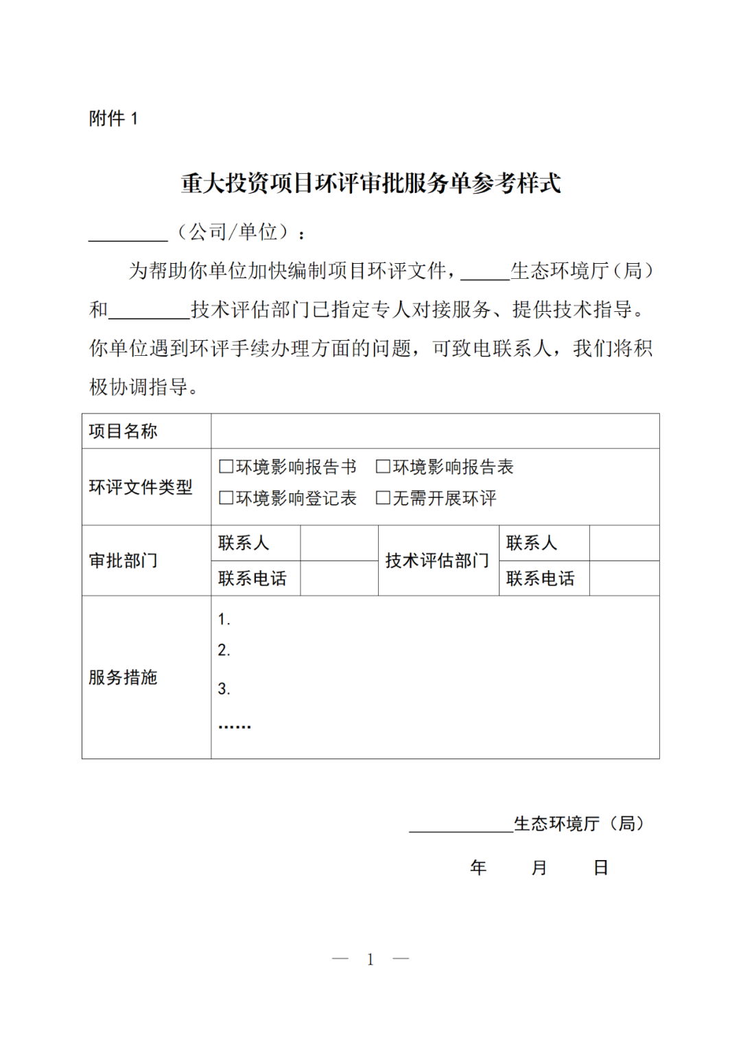 附件:重大投資項目環(huán)評審批服務單參考樣式