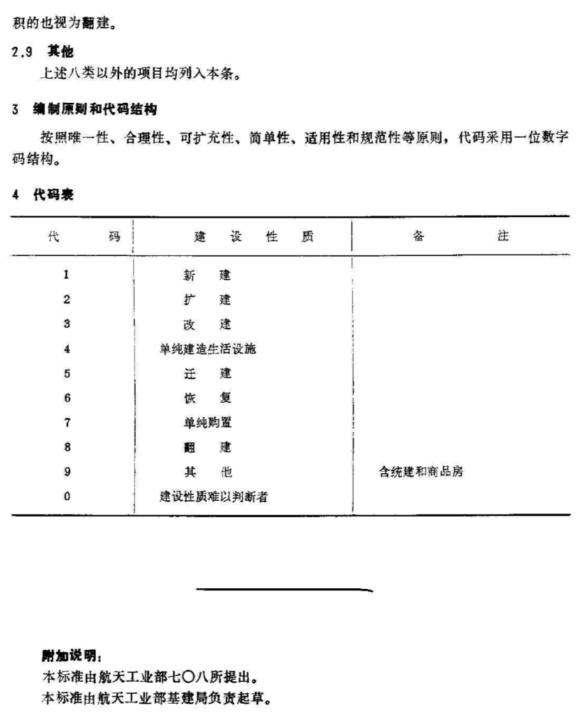 基本建設項目建設性質分類及代碼(QJ1273.3-87)